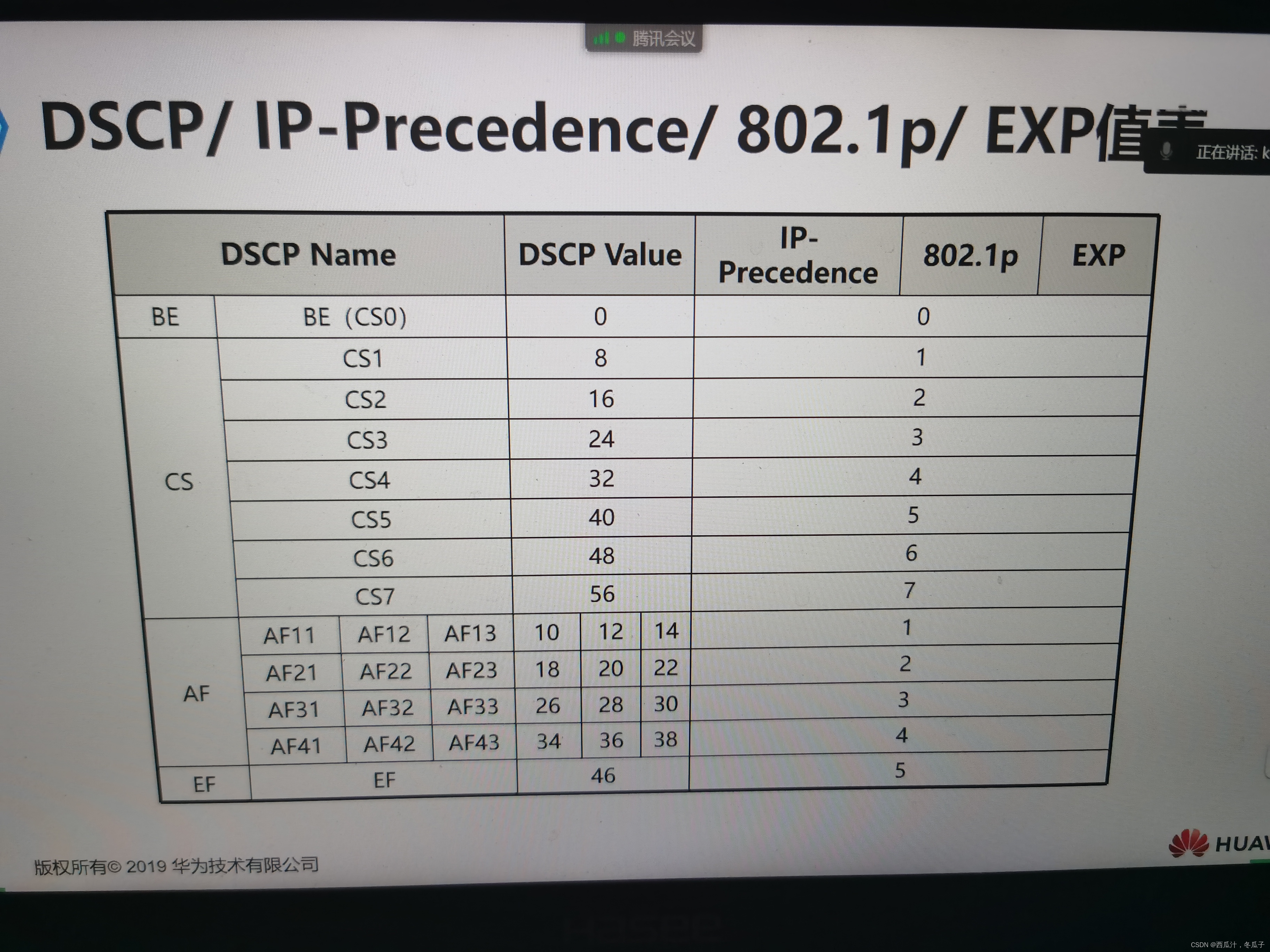 可以对应此表看dscp值对应哪个队列,也可以自己在设备上面display看。