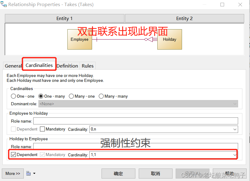 (2)使用依赖关系:看实验指导图25 依赖关系,把图25画在Power Designer中