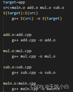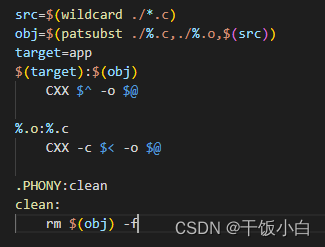 makefile中定义了一系列的规则(这些规则定义了一系列如何编译程序的操作,比如哪些文件需要编译、哪些临时文件需要及时的清除等),如此以来我们只需要通过make命令就可以一键编译源程序了。