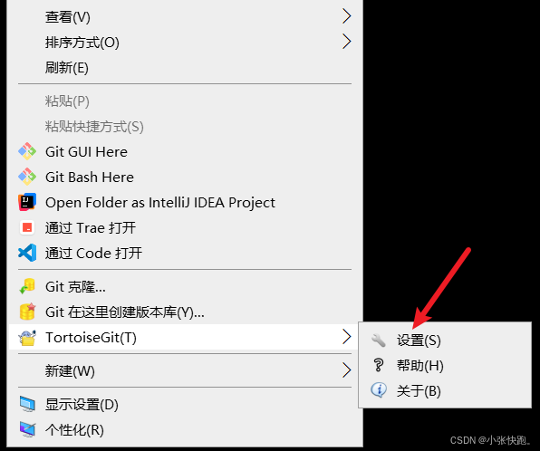 随便找一个地方右键选择TottoiseGit-设置