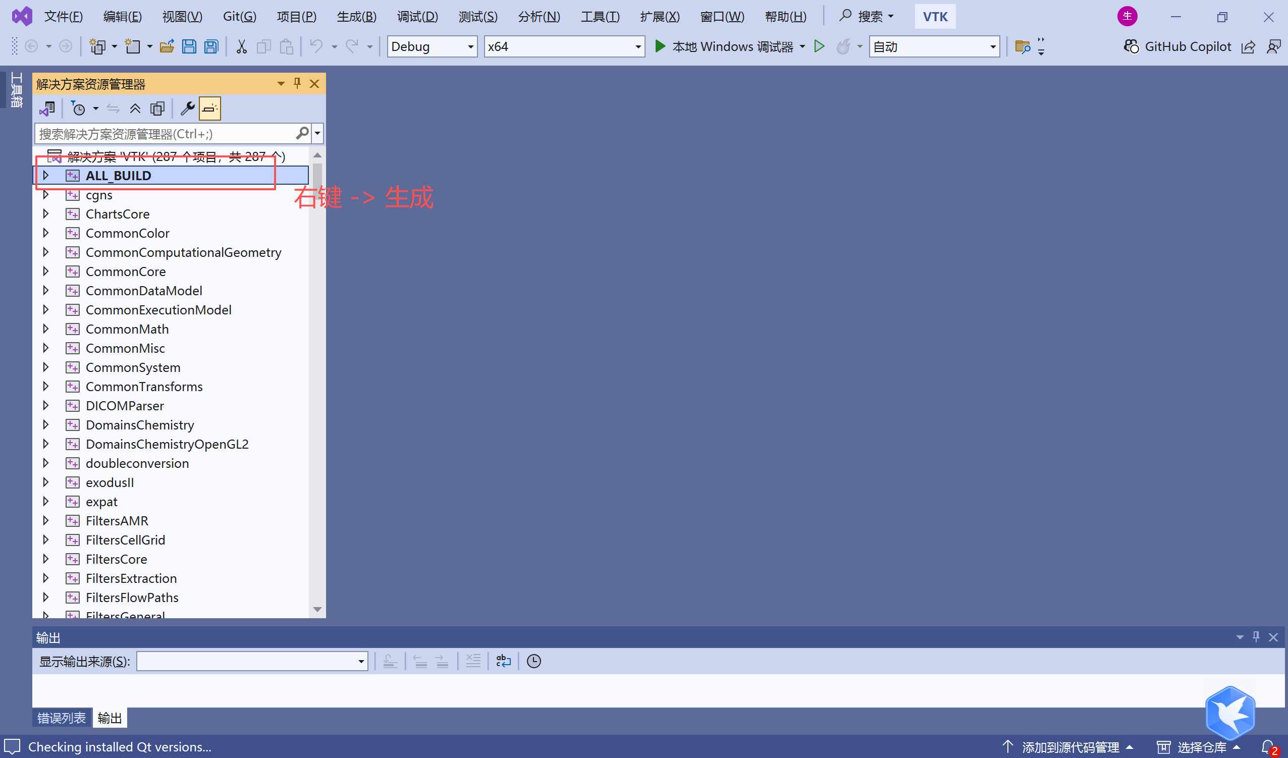 1.1 在解决方案资源管理器里,右键ALL_BUILD -> 生成