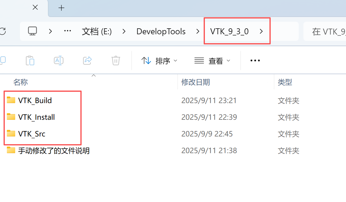2.2、新建两个文件夹,与VTK-Src同级,名称为:VTK-Install、VTK-Build;