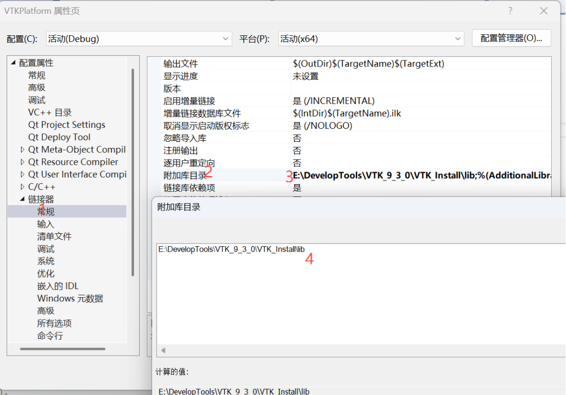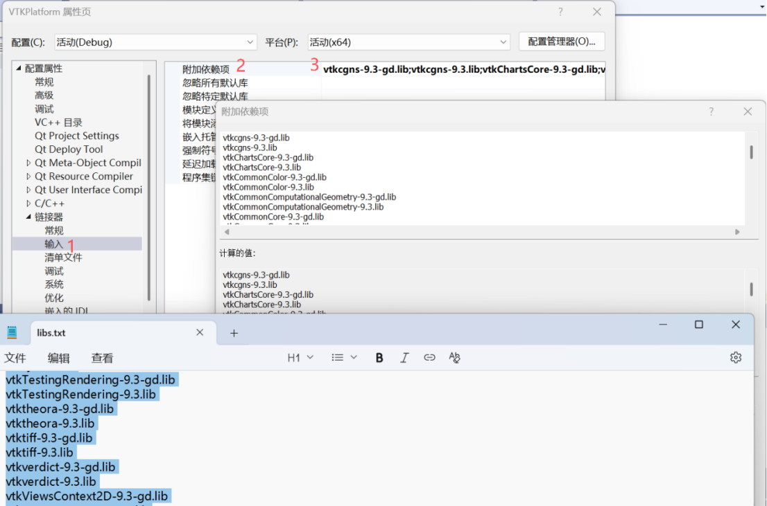 2、添加VTK库目录和VTK的lib文件
