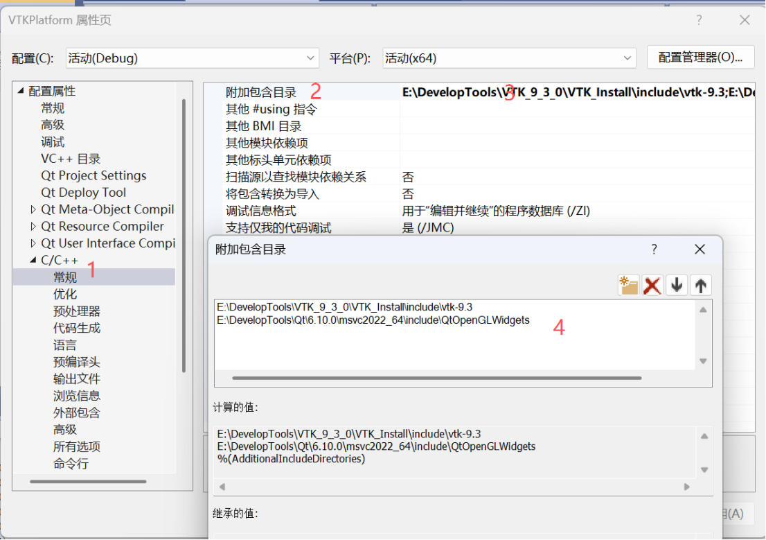 1、在VS项目中添加VTK的包含目录