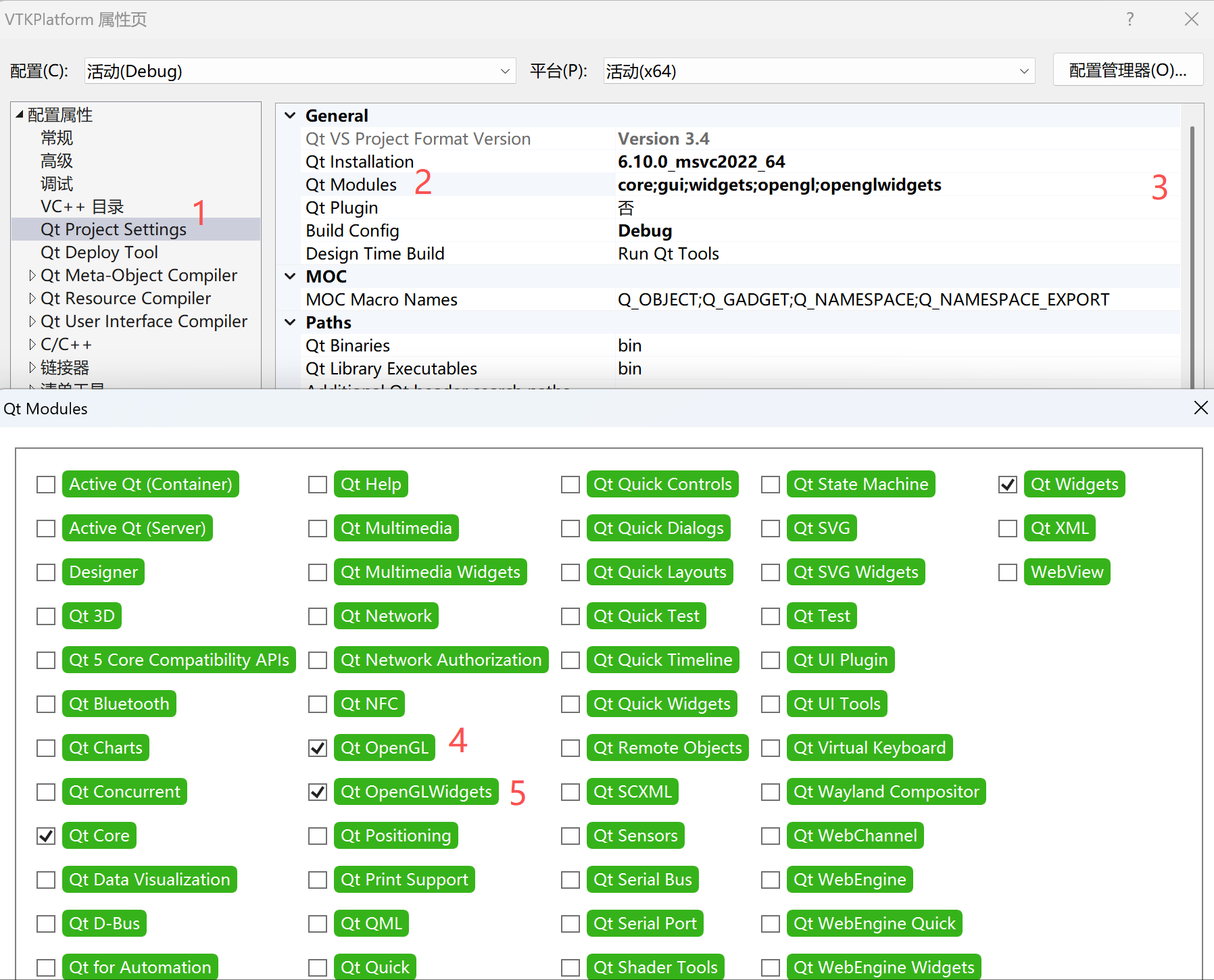 无论是Debug还是Release,一定要选择:Qt OpenGL和Qt OpenGL Widget