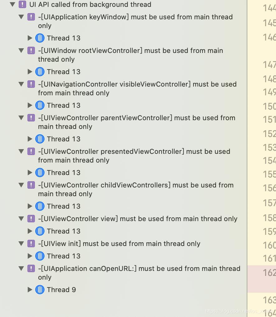 竟然好了。就是这么神奇,再次运行,也没有紫色的点出现了。项目也不崩溃了。终于一天完成这个需求了。真是一波三折,也给日后路上的朋友一个参考。博客里面说的主题主线程刷新UI,这个没错,类似写文章的标题,但是细节不同的项目还是具体情况。还剩下个疑点,为什么生产环境就不崩溃呢?另外这是需要思考的问题。