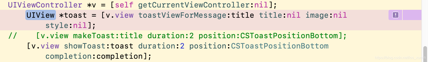 // [v.view makeToast:title duration:2 position:CSToastPositionBottom];