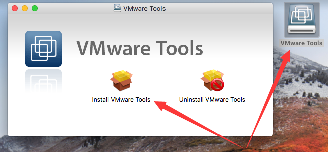 双击出现在桌面的“VMware Tools”,然后在弹出的对话框再双击“Install VMware Tools”即可。