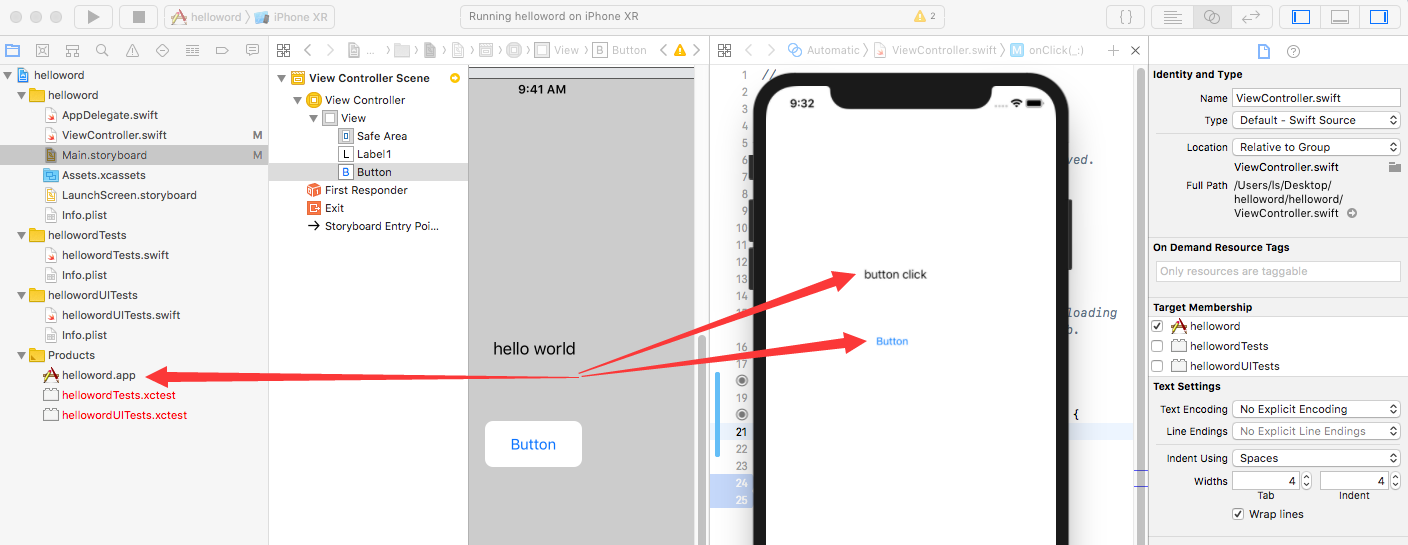 点击按钮可见文字成功改变。构建成的.app在Products文件夹下
