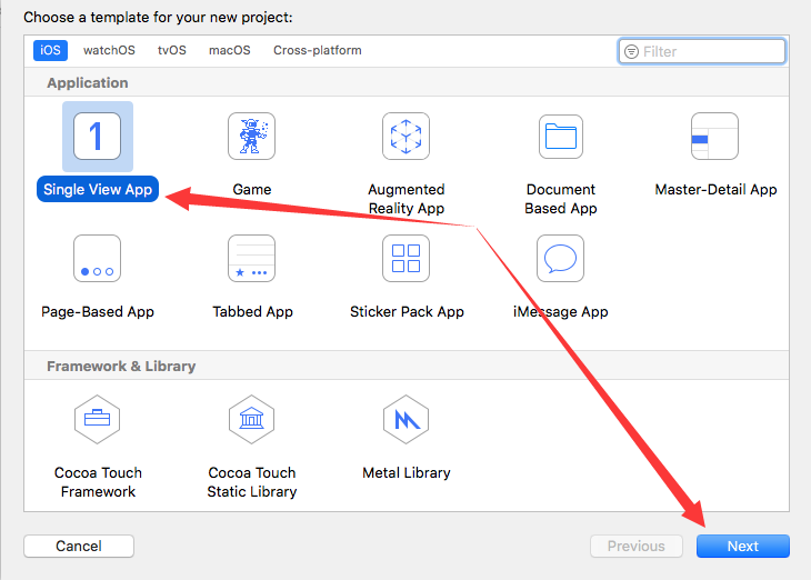 选择“Single View App”
