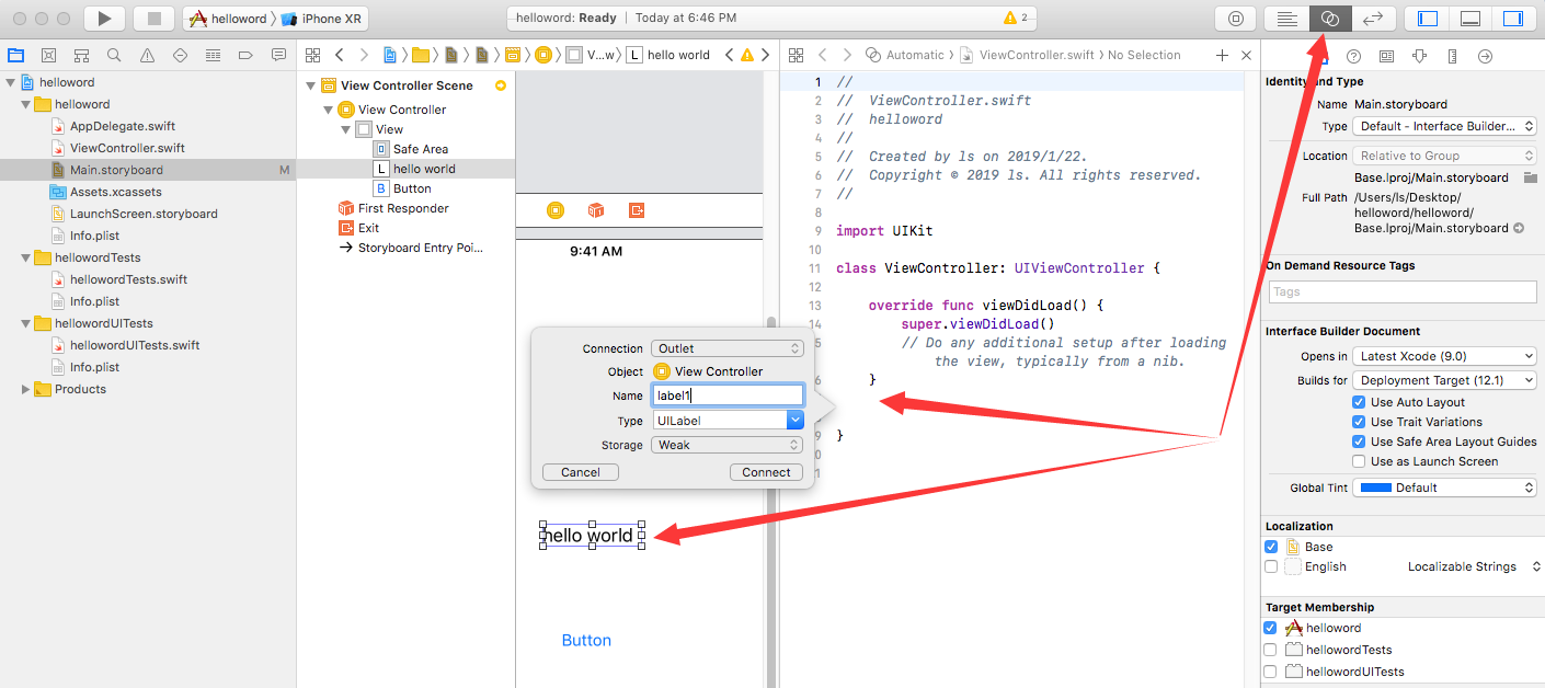 android上我们通过设置好控件的id,然后通过getElementById等函数获控件实例。xcode通过拖动的形式。