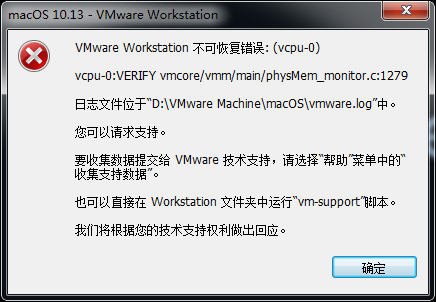 安装mac虚拟机就和普通虚拟机一样操作即可,不过第一次启动时会报错:vmware workstation不可恢复错误:(vpu-0)