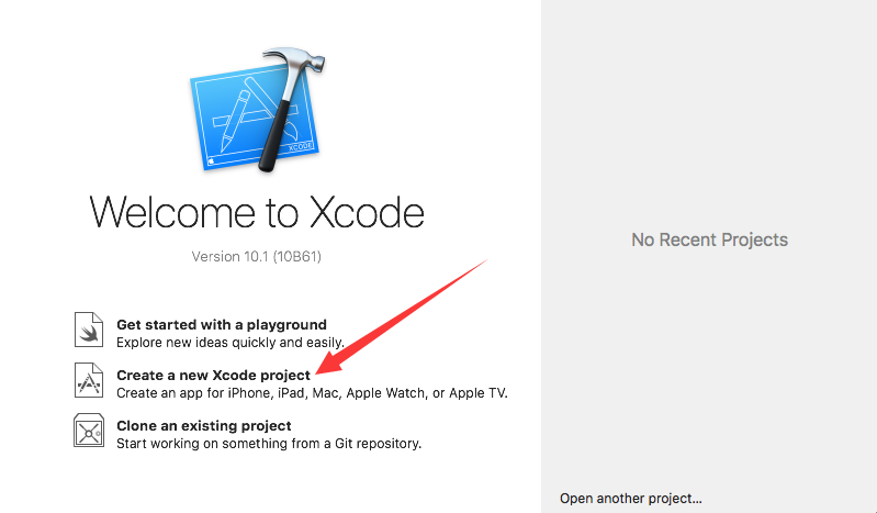 启动xcode,选择“Create a new Xcode Project”