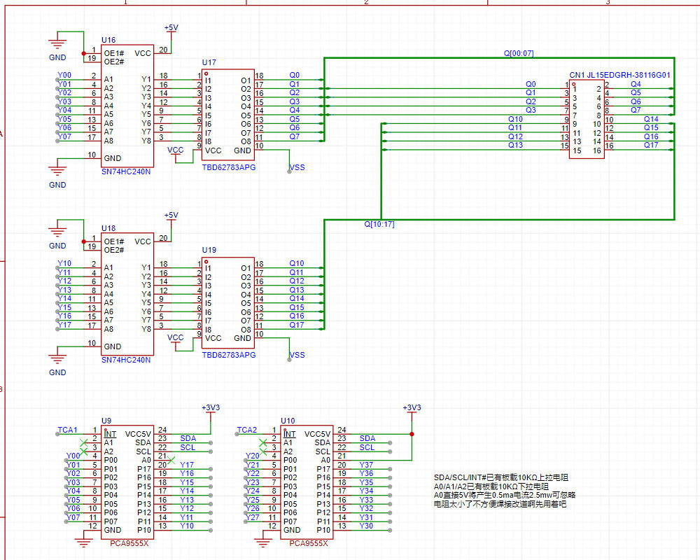 TCA9555 3.3V + SN74HC240N 5.0V + TBD62783APG 24V