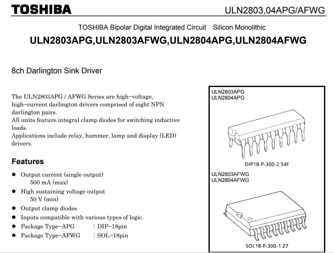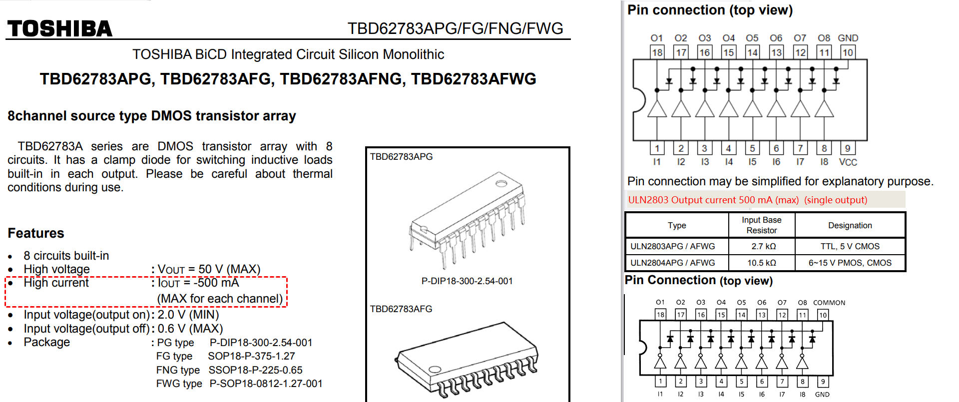 ULN2803(NPN):水龙头是“下水口”,水从水池(负载)流入水龙头(芯片)。这是“正向流动”。