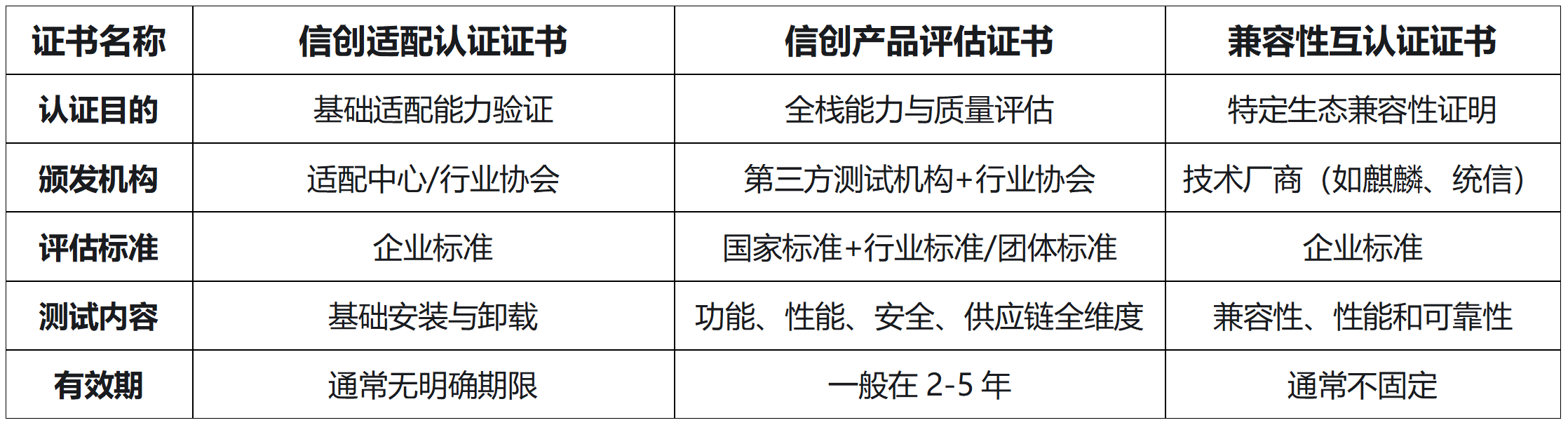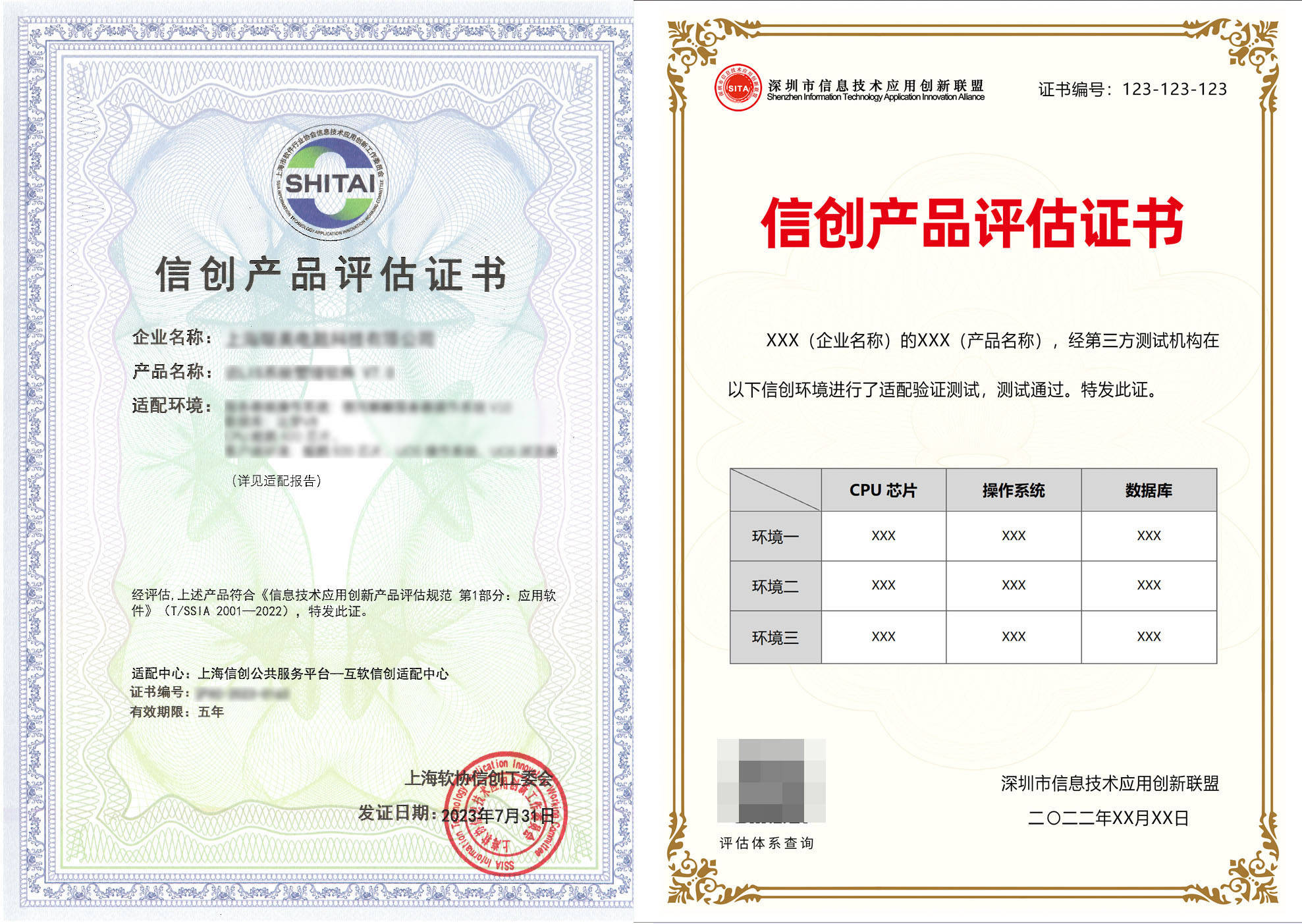 相比之下,信创产品评估证书则代表更高阶的认证维度。该证书由具备国家CMA/CNAS资质的权威第三方检测机构独立测评,并需经信创工委会/专委会或信创联盟组织专家严格评审后颁发。其依据国家标准、地方标准或《信创产品测评 通用标准》等团体标准,通过功能、性能、安全性、兼容性等多维度深度测试,不仅验证“能用”,更确保产品在真实场景中“好用、可靠、安全”,其严谨性与公信力已成为政企采购的核心决策依据。
