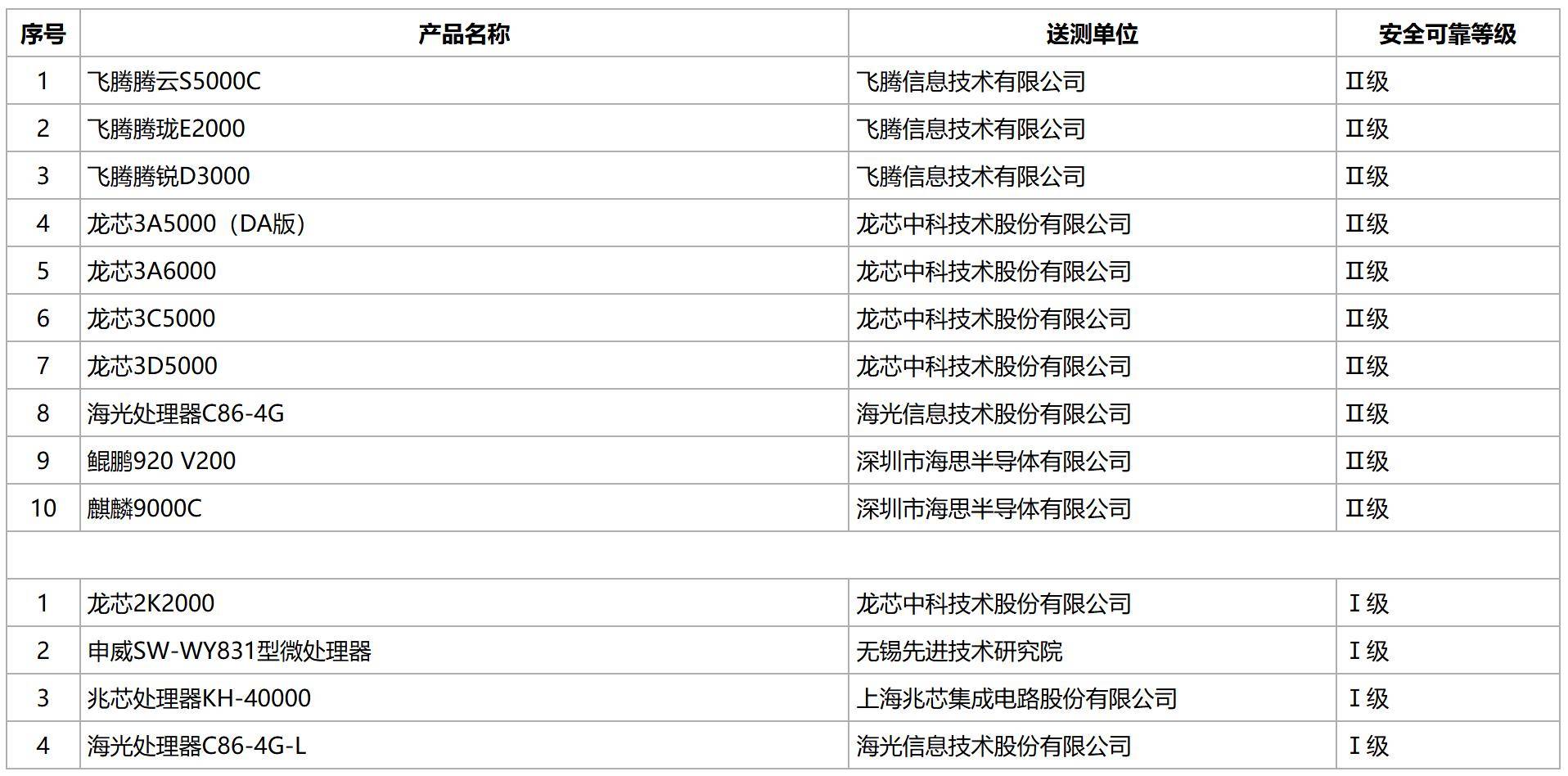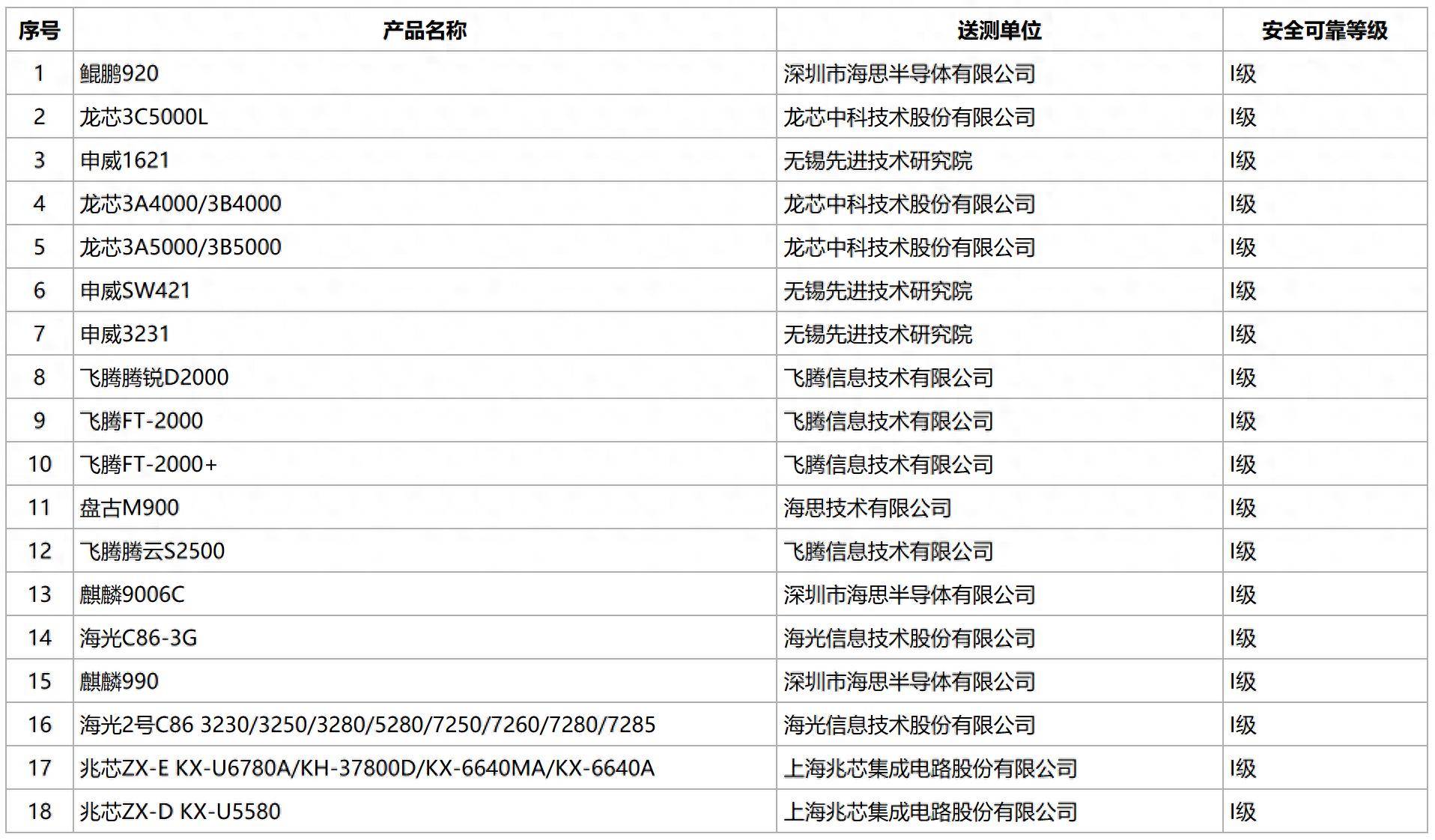 在信创产业中,CPU作为信息系统的核心硬件,其自主可控性直接关系到国家信息安全和产业生态的完整性。以下是中国信息安全测评中心发布的安可测评清单(CPU篇)。