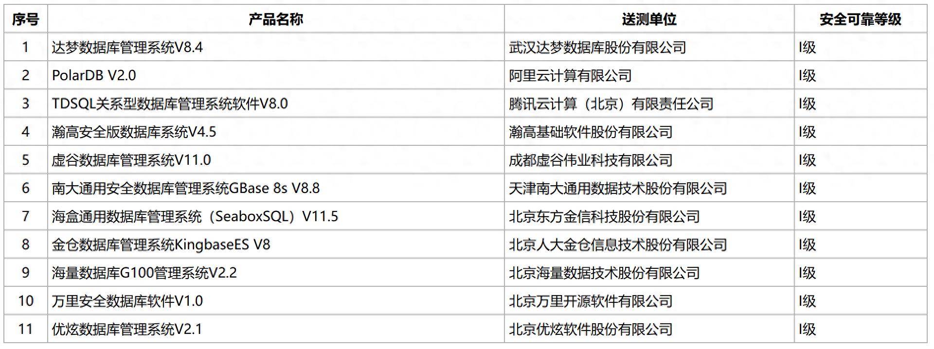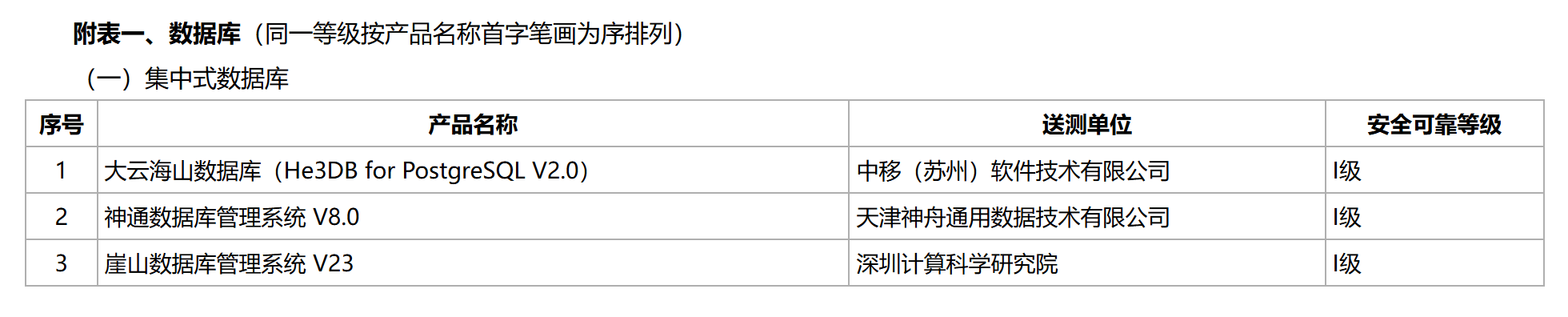 2025年8月22日,中国信息安全测评中心发布了2025年第2号《安全可靠测评结果公告》,大云海山数据库等3款数据库产品通过测评,测评结果均为“安全可靠等级Ⅰ级”。