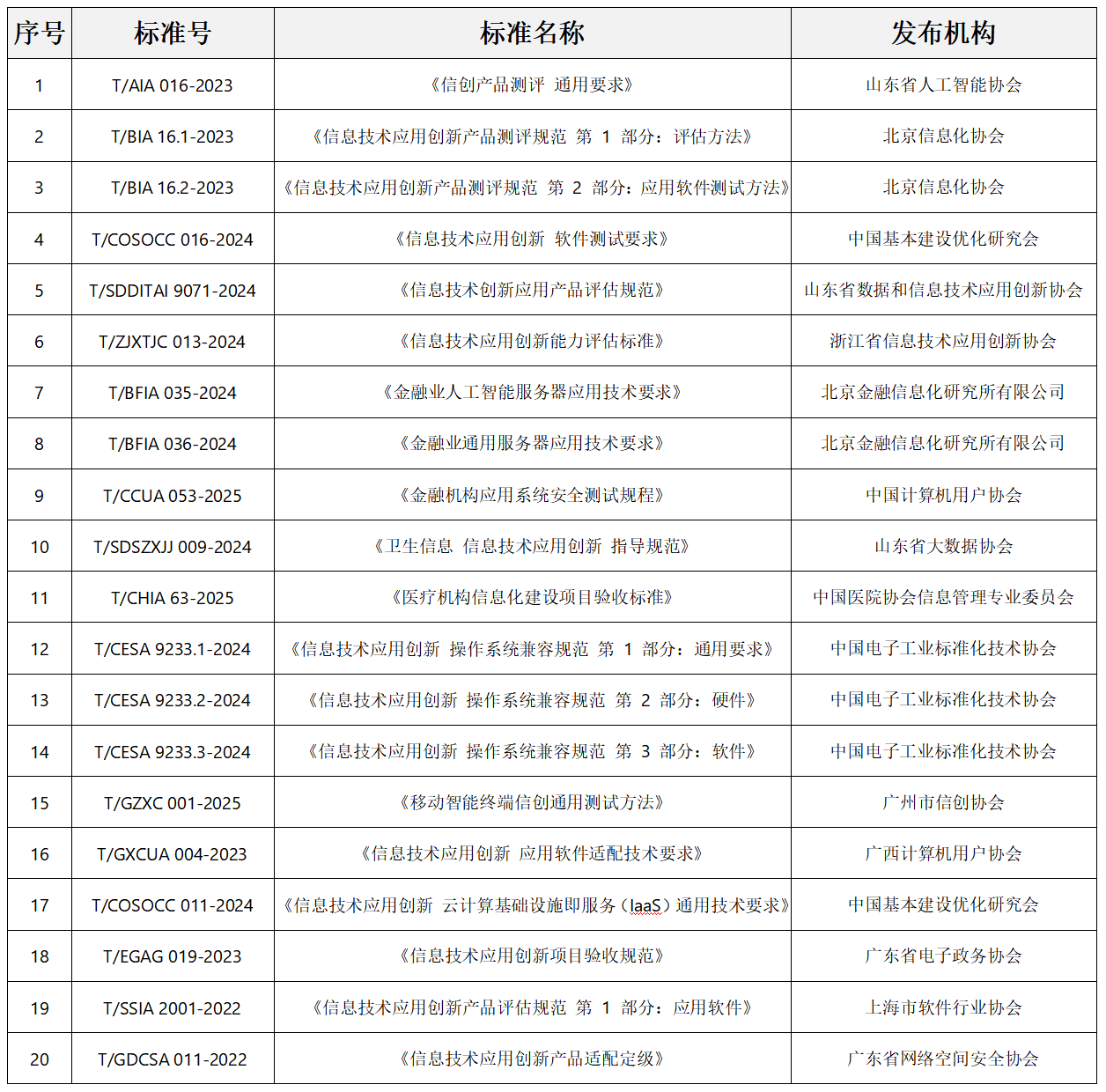 一、部分信创测试团标: