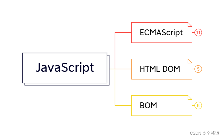- ECMAScript: (3/5/6/7)它是JS语言的标准,规定了JS的编程语法和基础核心知识