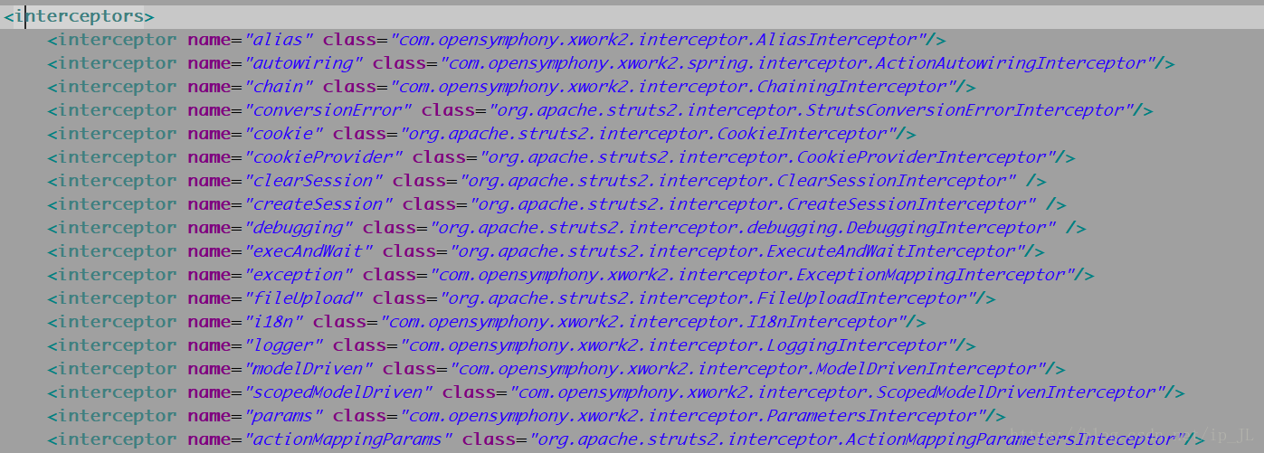该文件是struts的核心文件, 里面提供了返回类型、拦截器和业务bean