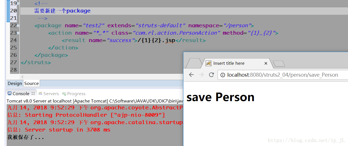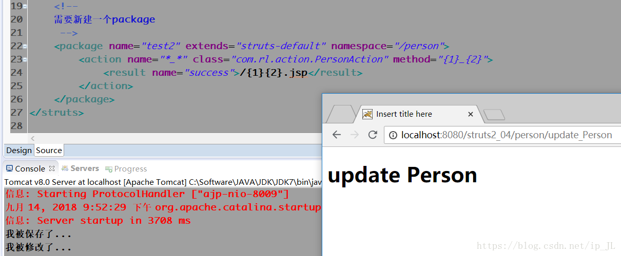 action标签中的name属性为"*", 这个"*"代表的是url路径中传递过来的值, 而{1}指的是第一个"*", 此时只有一个save与之匹配, 组合成"saveUser", 返回视图中的"/{1}User.jsp"也是相同的道理