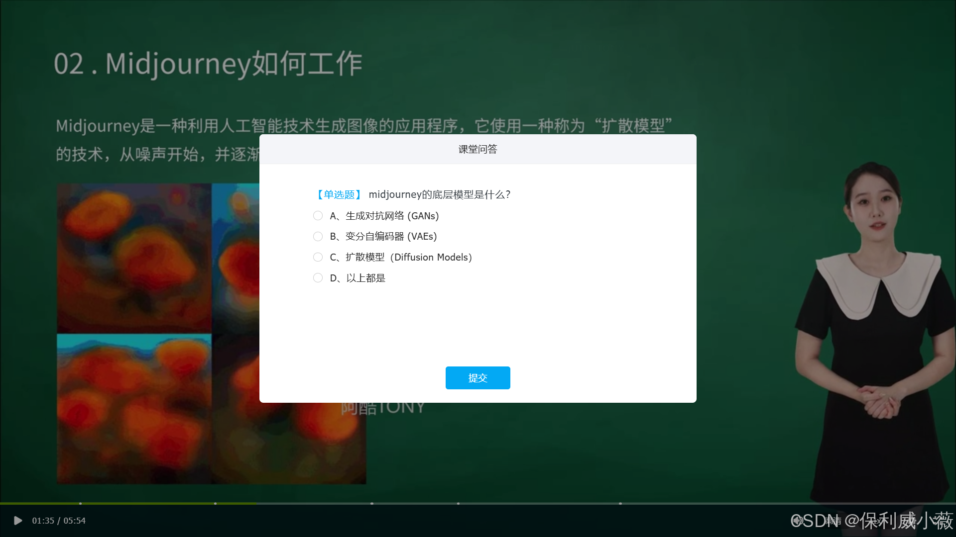 <h6 class="mb-0 text-uppercase"><em>问答播放器/视频弹题的效果(正常播放视频画面)</em></h6>