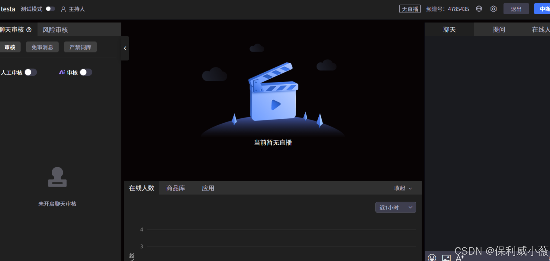 (4)如果是十分严谨的直播,可开启聊天审核功能。聊天审核功能开启后,聊天需要管理员审核后,才会出现在聊天区。