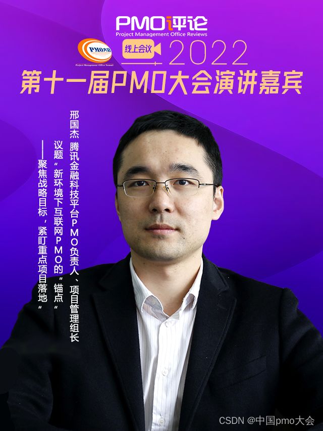 腾讯金融科技平台PMO负责人邢国杰将在2022第十一届PMO大会上分享其团队如何在新环境下聚焦战略目标,确保重点项目落地。演讲将涵盖战略目标分解、OKR实践、项目分级管理以及项目经理团队建设等内容,展示互联网项目管理的实战经验。