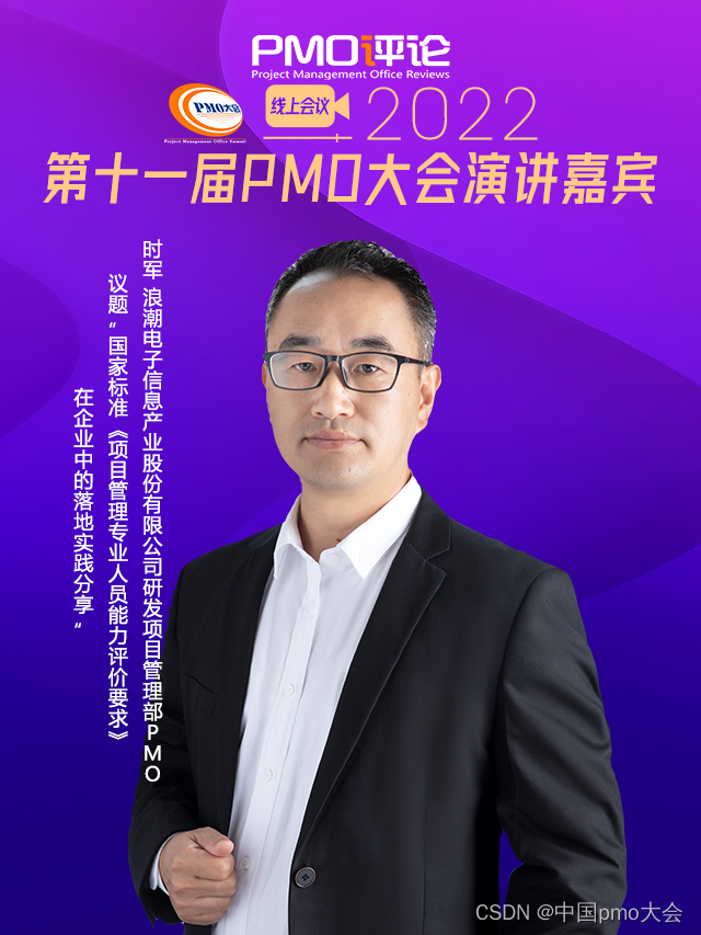 浪潮电子信息产业股份有限公司研发项目管理部PMO时军受邀为由PMO评论主办的2022第十一届PMO大会(线上会议)演讲嘉宾,演讲议题为“国家标准《项目管理专业人员能力评价要求》在企业中的落地实践分享”。大会将于8月13-14日和8月20-21日通过云端面向全国召开,会议主题为:“解码战略 赋能项目 PMO笃行致远”,敬请关注!