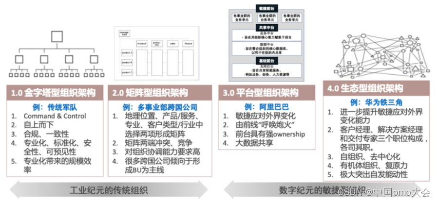 前面这个例子只是一个比较简单的业务模式,对于大型组织而言组织架构正发生转型。