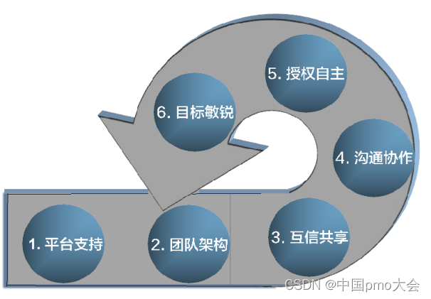 平台支持是敏捷团队赖以生存的基础,从团队架构开始的五个要素需要不断持续迭代。例如:团队架构中的成员组成,以前是相对稳定的,现在变得更加动态。有些人同时存在于多个团队中,成员进进出出更加频繁。