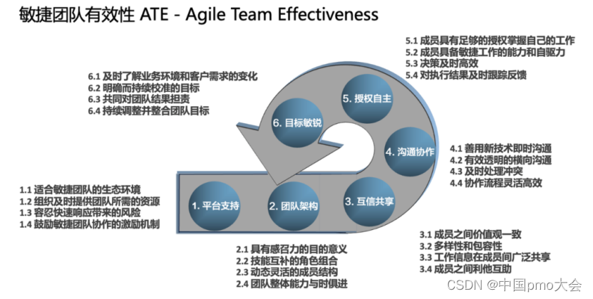 基于我们的研究,以及在多家企业的咨询实践的打磨,我们将敏捷团队有效性(ATE, Agile Team Effectiveness)归纳为以下六个大的方面:
