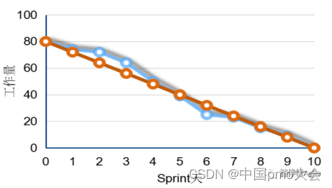 进度曲线(蓝色),体现了截止目前,迭代还剩多少故事点数没有完成;