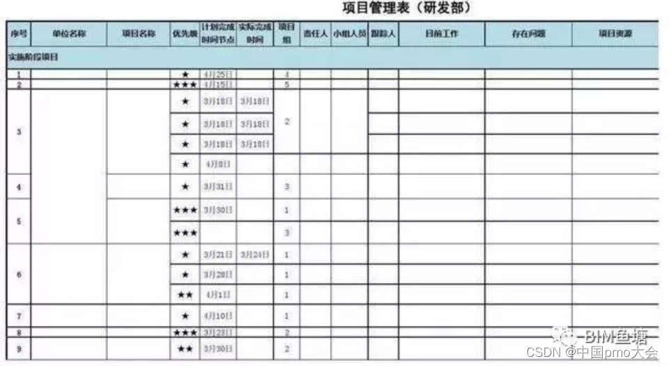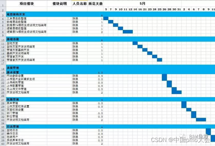 也叫甘特图,貌似也是最知名的项目管理图表,其他伙伴常用Project,而我用excel……