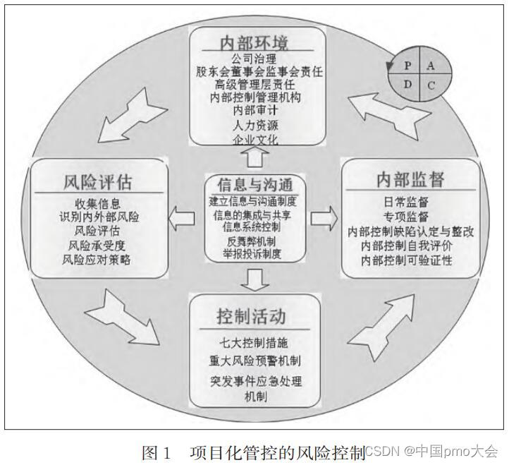 外部市场是瞬息万变的,同时企业自身发展和项目调整也会产生一系列的风险,必须针对这些风险进行控制和预防,提供风险控制节点和控制预案。如图1 所示,便是一个典型的 PDCA 循环下的风险控制模型。