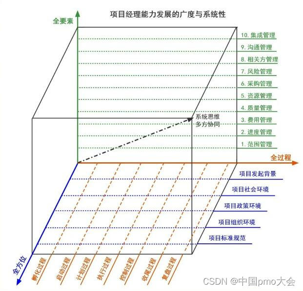 项目管理的方式是团队协同,基础是要用有效的方法制定明确的目标、描述清晰的流程、界定具体的任务。达成目标需要整合资源,凝聚人心,“不怕眼前有山,就怕心里没路”,项目经理要有思路,要不断发展自己的能力,这既要有广度又要有系统性,这里我用“三全”概括之。