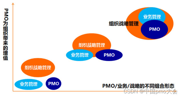 根据不同组织的管理需要,PMO组织大致分为三种类型:辅助型、控制型、战略型。很多企业PMO初期往往采用“辅助型”的形式,随着人员项目管理知识的丰富与经验的提升,内部职责与权限逐渐明晰,1-2年后逐步进阶到“控制型”PMO,之后的2-3年一直处于该阶段,发展缓慢。此时的PMO除了要不断优化项目管理流程和工具,还需要主动“出圈”,向上寻找,以便从更高纬度解决在低纬度时难以解决的问题。