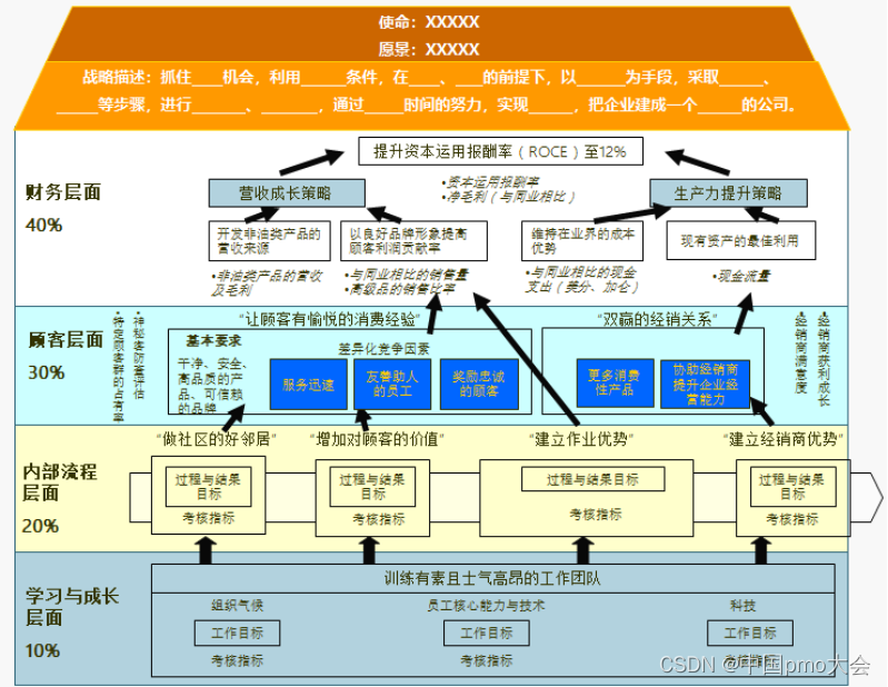 谁来保证战略的落地?PMO!这也是战略型PMO最大的价值。战略型PMO,在评估项目优先度、资源分配和人员调整时会时刻谨记实现公司战略价值这一中心目的,通过组织战略解码,让不同的项目、不同的工作,与战略规划衔接一致,最终实现企业的战略价值。
