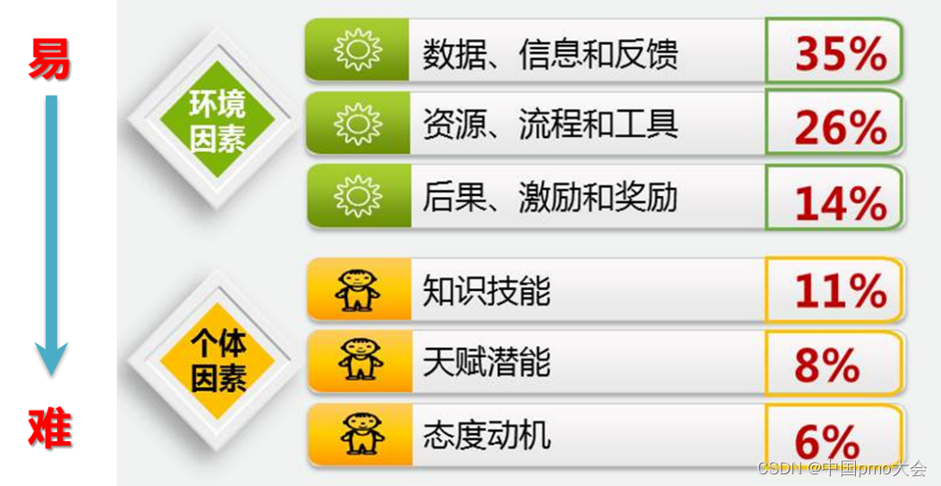 实际工作中,PMO可以参考吉尔伯特的行为工程模型的顺序,从工作环境与员工自身两个方面,把握“先技控再人控”的绩效核心出发点。具体来说,第一步赋能规范与流程。通过建立规则,保证各部门和人员按照统一的程序和方法处理工作,各司其职又相互协作配合,有效减少冲突和资源浪费。再者就要赋能知识与技能。既然是PMO,那最重要能力赋能就是项目管理能力,包括项目范围管理、进度与时间管理等这样的硬技能,也涵盖团队管理、沟通管理这样的软技能。