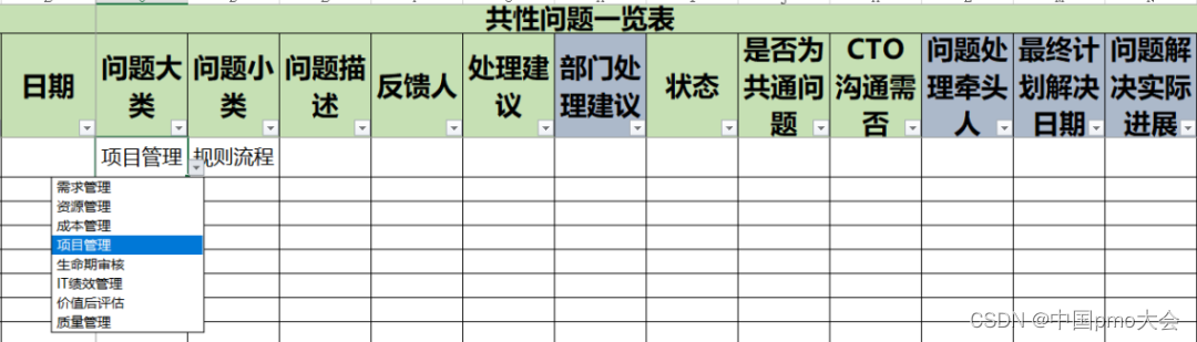 N多个项目结项的积累,需要寻找共性问题提炼成小贴士、推动规范与流程的优化等等,避免大家走弯路。这里也推荐一种寻找与求解共性问题的小方法:关键字归纳。以需求、成本、资源等作为问题大类,以流程规则、工具模板、培训宣贯等作为问题小类作为区分,遇到问题时进行记录,当多个项目都出现一类问题时,就可以归纳总结。
