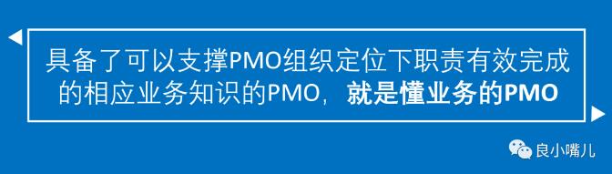 “具备了可以支撑PMO组织定位下职责有效完成的相应业务知识的PMO,就是懂业务的PMO”。