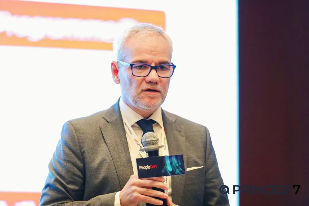 随后,PeopleCert产品管理副总裁Markus Bause先生正式发布了新版PRINCE2® 7认证,并详细梳理了新版认证在专业适用性、人员管理、数字技术、可持续实践等方面引入的全新变化。