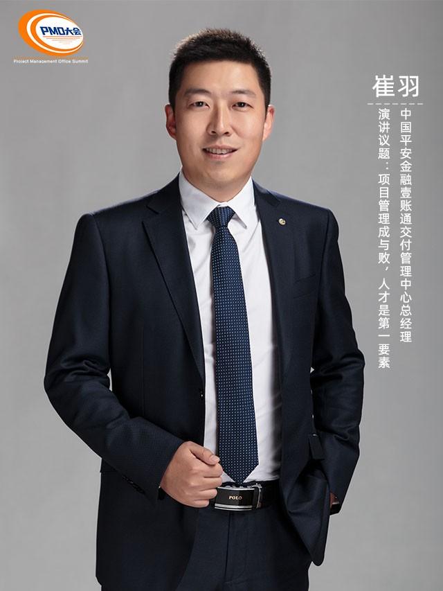 崔羽,中国平安金融壹账通交付管理中心总经理,香港浸会大学MBA,项目管理专家(PMP)。先后任职于金蝶软件、中国平安。20年企业管理、金融科技数字化规划设计从业经历,具有丰富的产品研发、业务咨询、交付项目管理及战略客户经营实战经验。主导过众多世界500强数字化转型项目的建设工作。精通项目管理体系建设,项目投产设计、岗位能力素质模型、项目人才培养体系,战略客户经营,项目群管理等业务。