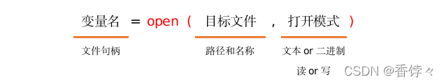 Python 通过内置函数 open() 打开目标文件(主名+扩展名),并返回一个文件对象,也叫句柄(handle)。