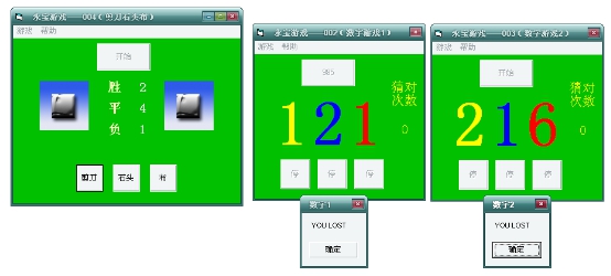这时候对程序的了解,也只是最简单的一些语法而已,直到一个亲戚送了一套VCD,是开天辟地的视频教程,里面介绍了VB6.0,在我看来,那是非常适合新手,培养程序思维的一套教程,在大叔那买了3块钱一张的VB碟子,装上VB6.0之后,就跟着视频中的示例操作起来了。于是我写出了人生中的第一个游戏,一个猜数字的小游戏,并尝试着改变游戏的规则,制作类似石头剪刀布这样的游戏。