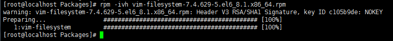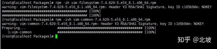 安装命令的核心是-i(即英文install的首字母)参数,后面可以跟其他东西,如果直接用rpm -i 软件包名字,那么安装过程就会一闪而过,只告诉你安装结果。在windows的安装过程,我们常常可以看到进度信息,其实用rpm的安装方式也可以看到,用上vh参数就可以了,比如:rpm -ivh vim-filesystem-7.4.629-5.el6_8.1.x86_64.rpm