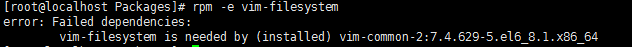 这个就很简单了,rpm -e 软件名,比如卸载刚安装的vim-common,rpm -e vim-common。