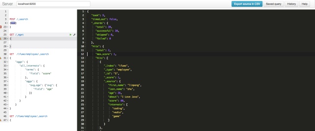 正如我们前面介绍过的一样,我们将此三行数据通过chrome-sense的插件在浏览器里面写入到我们的elasticsearch当中。