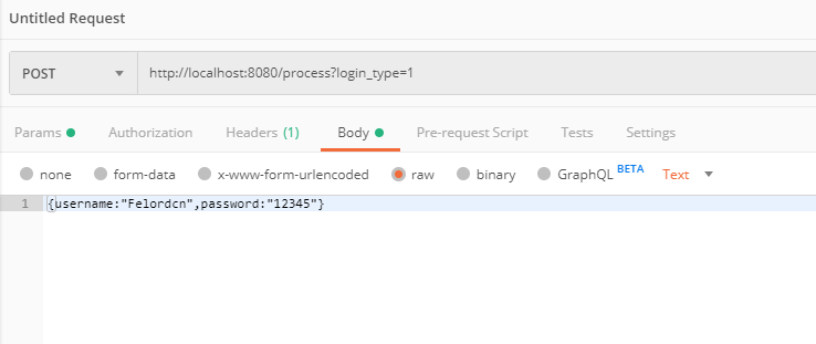 通过 POST 表单提交方式 http://localhost:8080/process?username=Felordcn&password=12345&login_type=0 可以请求成功。或者以下列方式也可以提交成功: